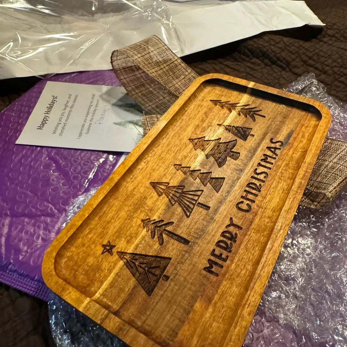 - Each tray is hand-carved by skilled artisans, with every Christmas tree pattern and "MERRY CHRISTMAS" lettering crafted with meticulous care.
