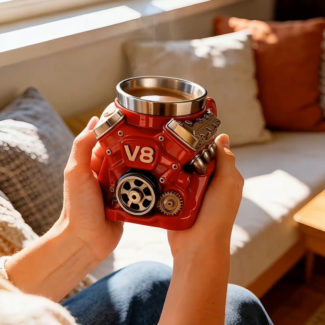 Our V8 Engine Coffee Mug merges automotive passion with daily use: 1:1 V8 engine details, durable double-layer insulation and an ergonomic grip. A year-round mechanical companion for gearheads, keeping drinks perfectly tempered. Ready to sip with horsepower flavor?